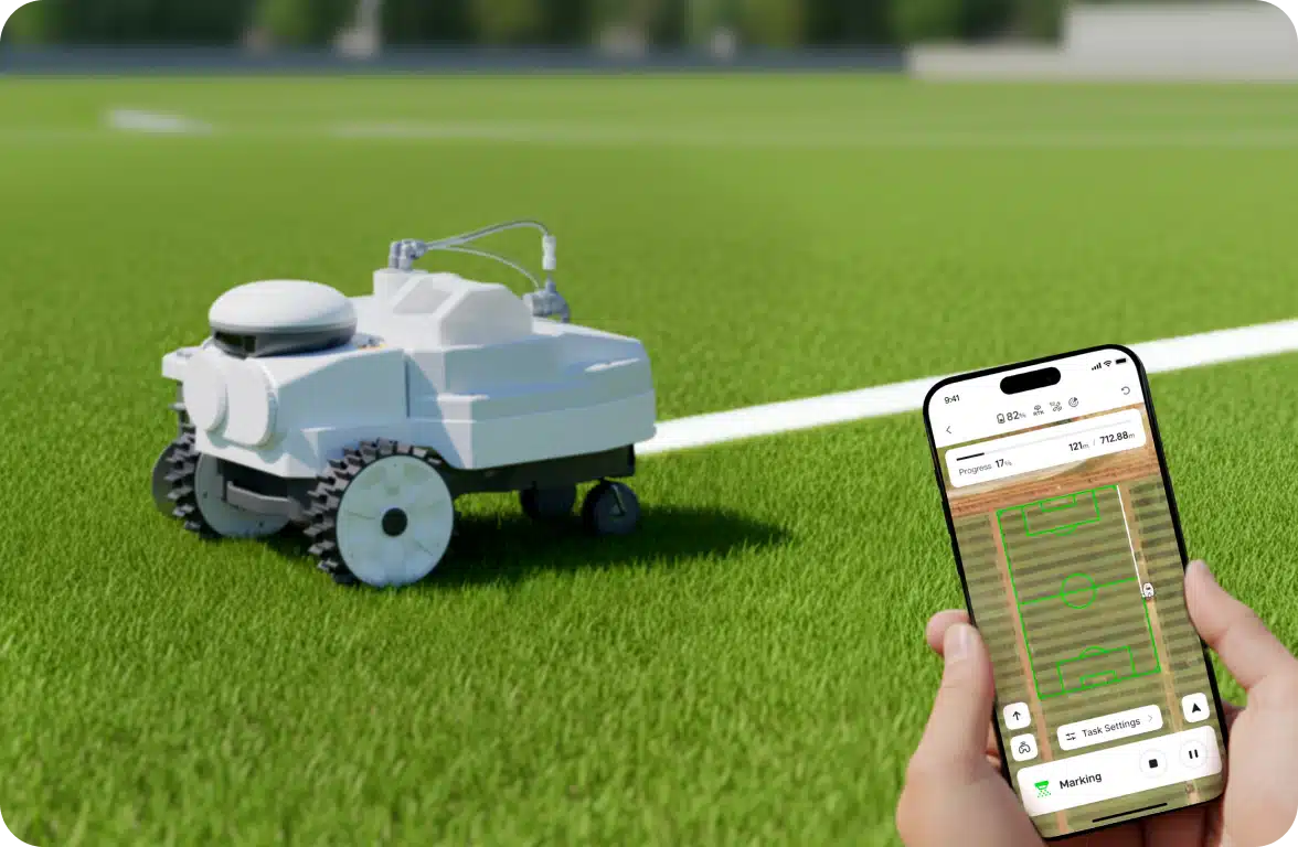 Robotten er kompakt og let at transportere, hvilket gør den nem at bruge på forskellige felter uden behov for tunge køretøjer til opsætning. Kortlæg banerne hurtigt med den medfølgende håndholdte punktmarker, og lad PaintMaster Mini arbejde autonomt og effektivt, mens du sparer tid og op til 90 % af arbejdskraften sammenlignet med traditionelle markeringer.