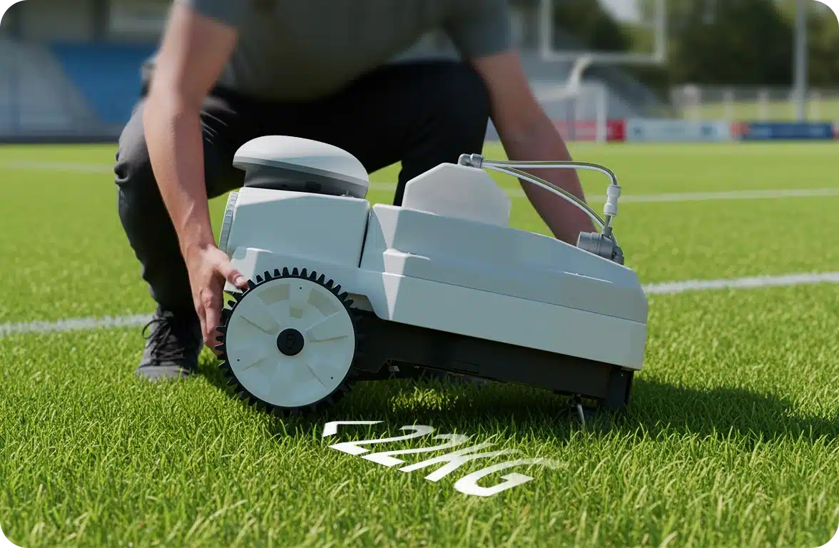 FJD PaintMaster Mini er en let, intelligent og fuldautomatisk linjemarkeringsrobot specielt udviklet til sportsbaner, klubber, skoler og mindre faciliteter, der ønsker professionelle, præcise markeringer med minimal indsats. Den leverer gentagende, knivskarpe banelinjer med centimeternøjagtighed, takket være avanceret RTK GNSS-navigation og smart banekortlægning – uden manuelt opmåling og besvær.