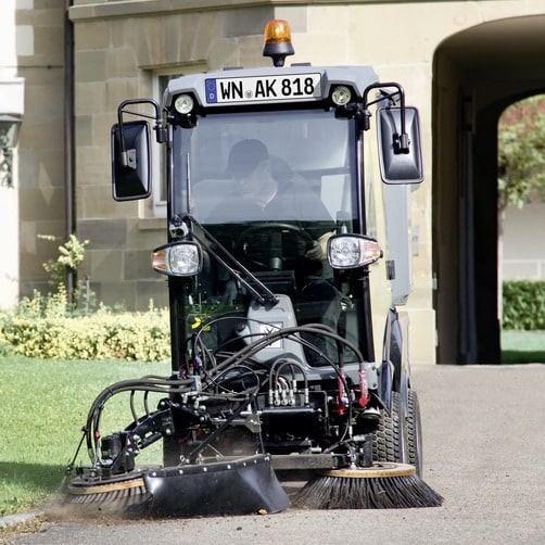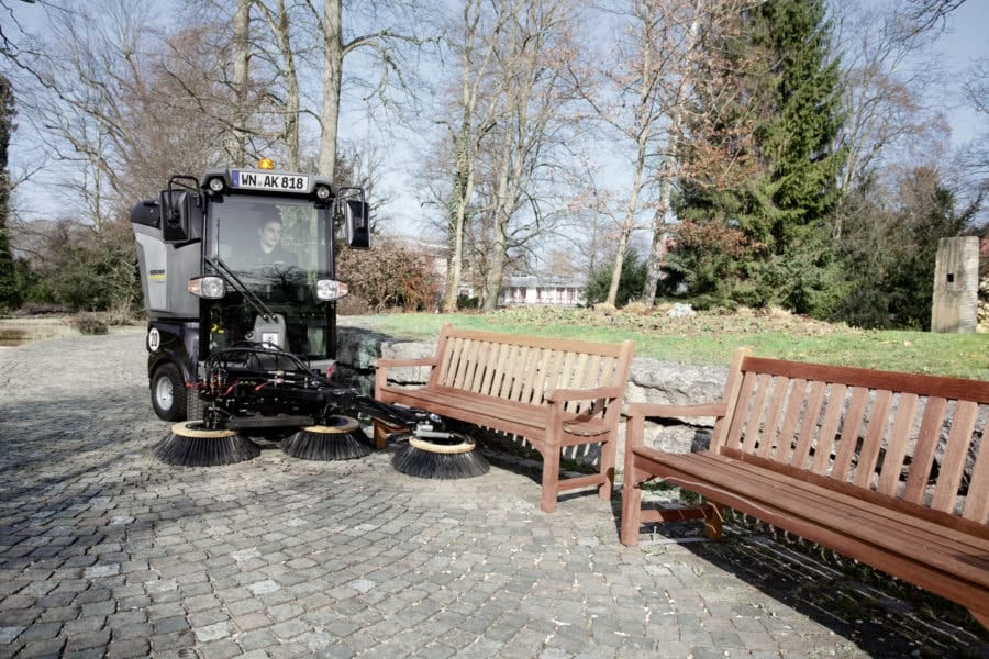 Manøvredygtig, praktisk og økonomisk, med sit slanke, kompakte design og 26 hk diesel motor, er den multifunktionelle redskabsbærer MIC 26 C fra Kärcher specialisten til helårsbrug på gangstier og i parker.