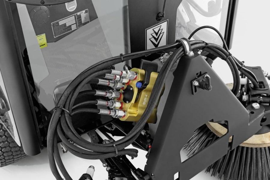 - Indbygget hurtigskiftesystem. Udskiftning af redskaber bagpå sker med et hurtigskiftesystem med hydraulisk vipperamme. Valgfrit multi-koblingssystem til hurtig og drypfri tilslutning af de hydrauliske dele.